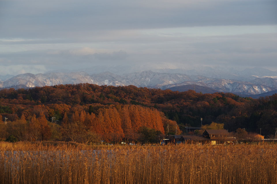 再度鶴仙渓遊歩道を回ってくる程度の時間もありましたが、紅葉も見頃をやや過ぎていましたし、もう一回行こうという気にはちょっとなれませんでした。それでも少し時間もあったので、木場潟へ寄って帰ることにしました。晴れてきたので白山がきれいに見えているかも、と思ったのです。