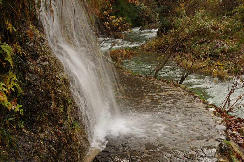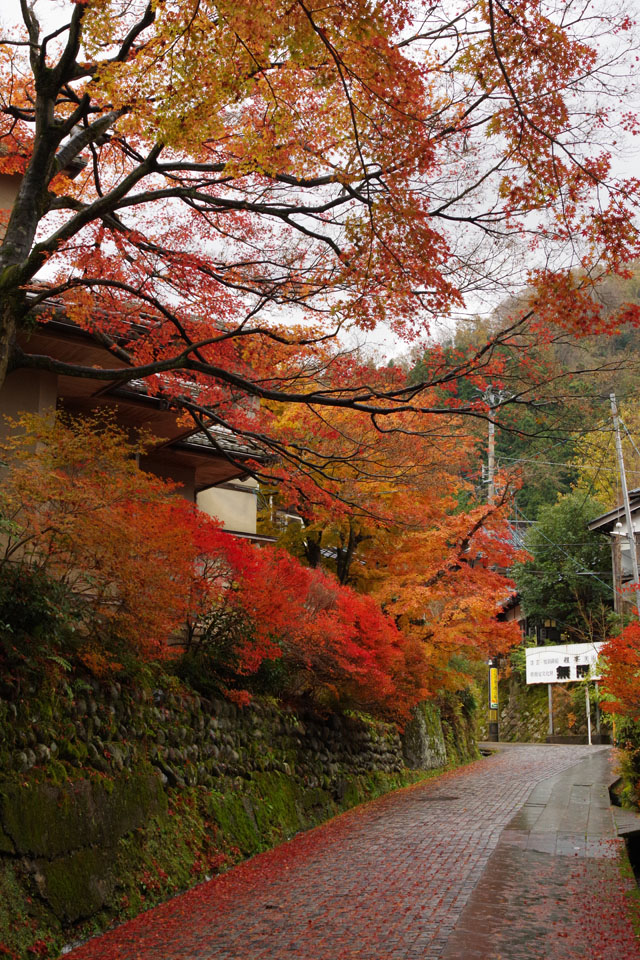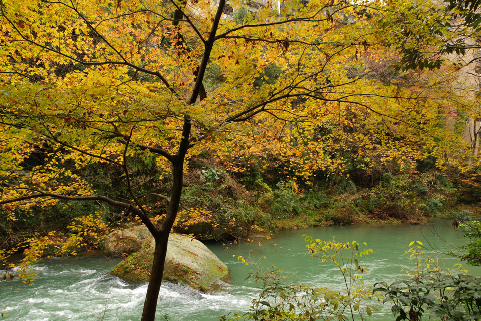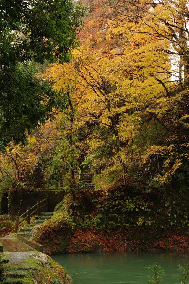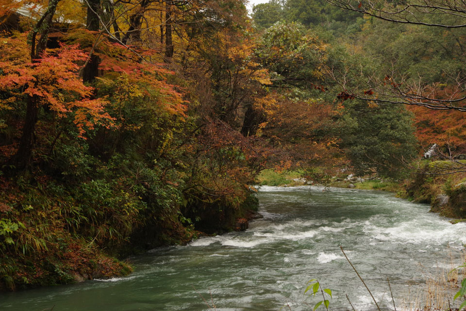 鶴仙渓を散策している間は雨が降ったり止んだりの天気でしたが、帰る頃になると青空が少し見えてきました。
