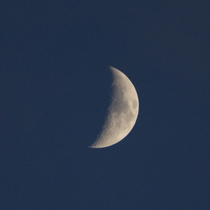 日が隠れると辺りも少しずつ暗くなり始め、うっすらと出ていた月もだんだんくっきりと見えてきました。