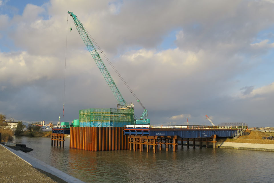 何の工事をしているのかと思ったら、桟橋を架けているようです。