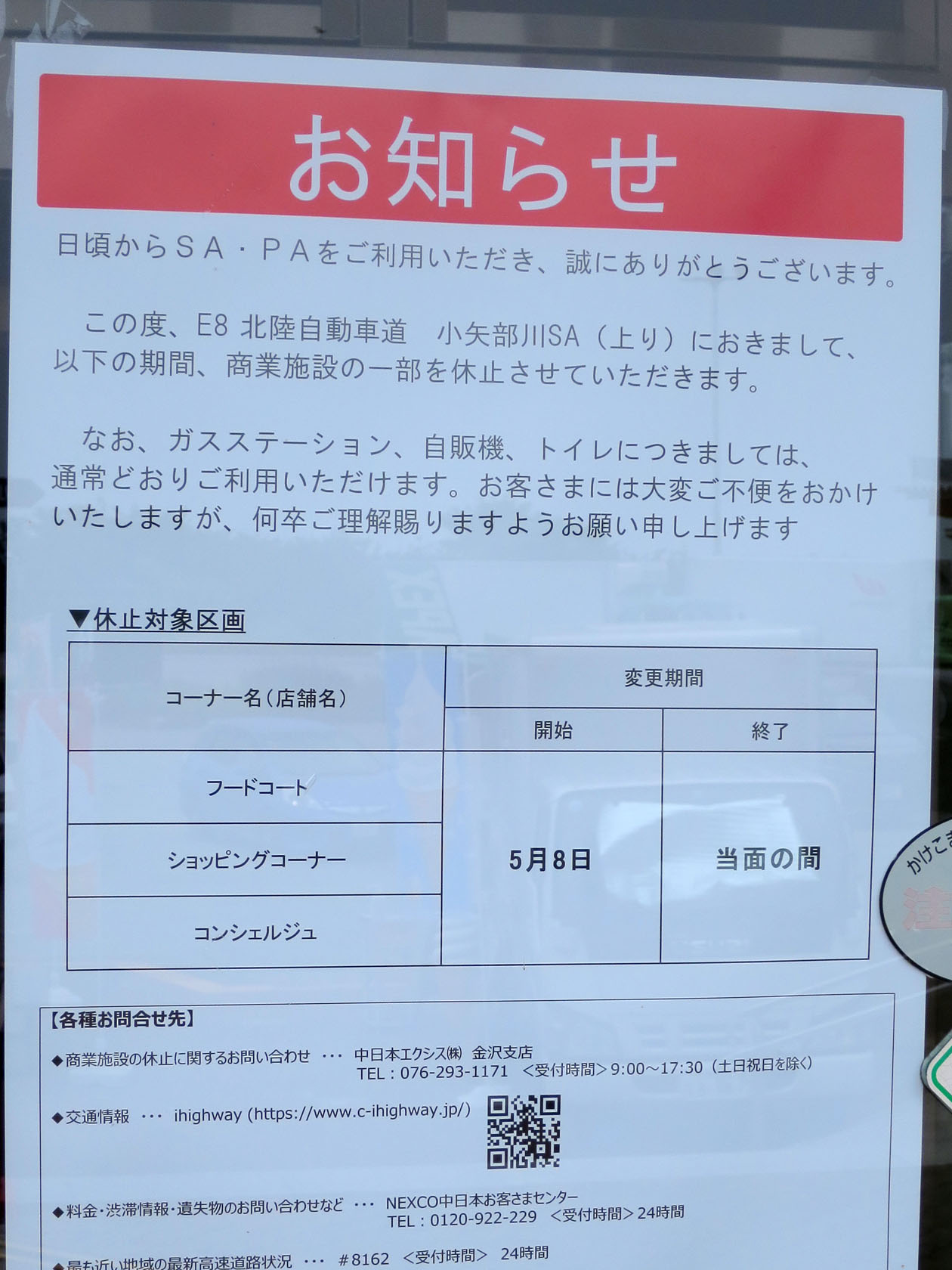 下り側もレストランを閉めてコンビニをオープンしたりしていましたが、高速道のSA・PAもかなり経営が厳しいようですね。今回のコロナ騒動での外出や移動の自粛がとどめを刺したのかもしれません。