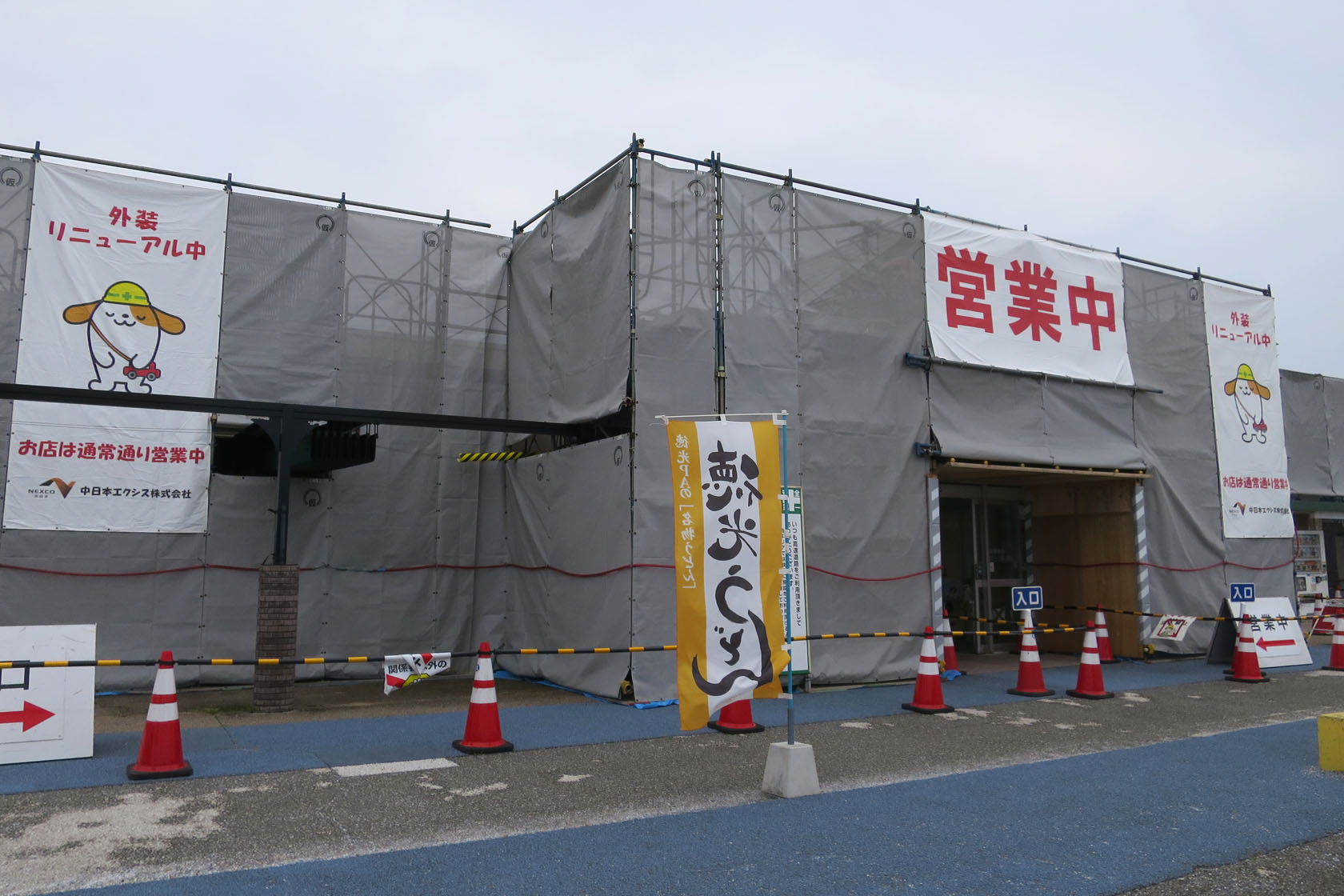 小矢部川SAの後だったので、まさかここもつぶれてしまったのかと一瞬思いましたが、こちらは外装の工事中という事で、中は通常営業を行っていました。