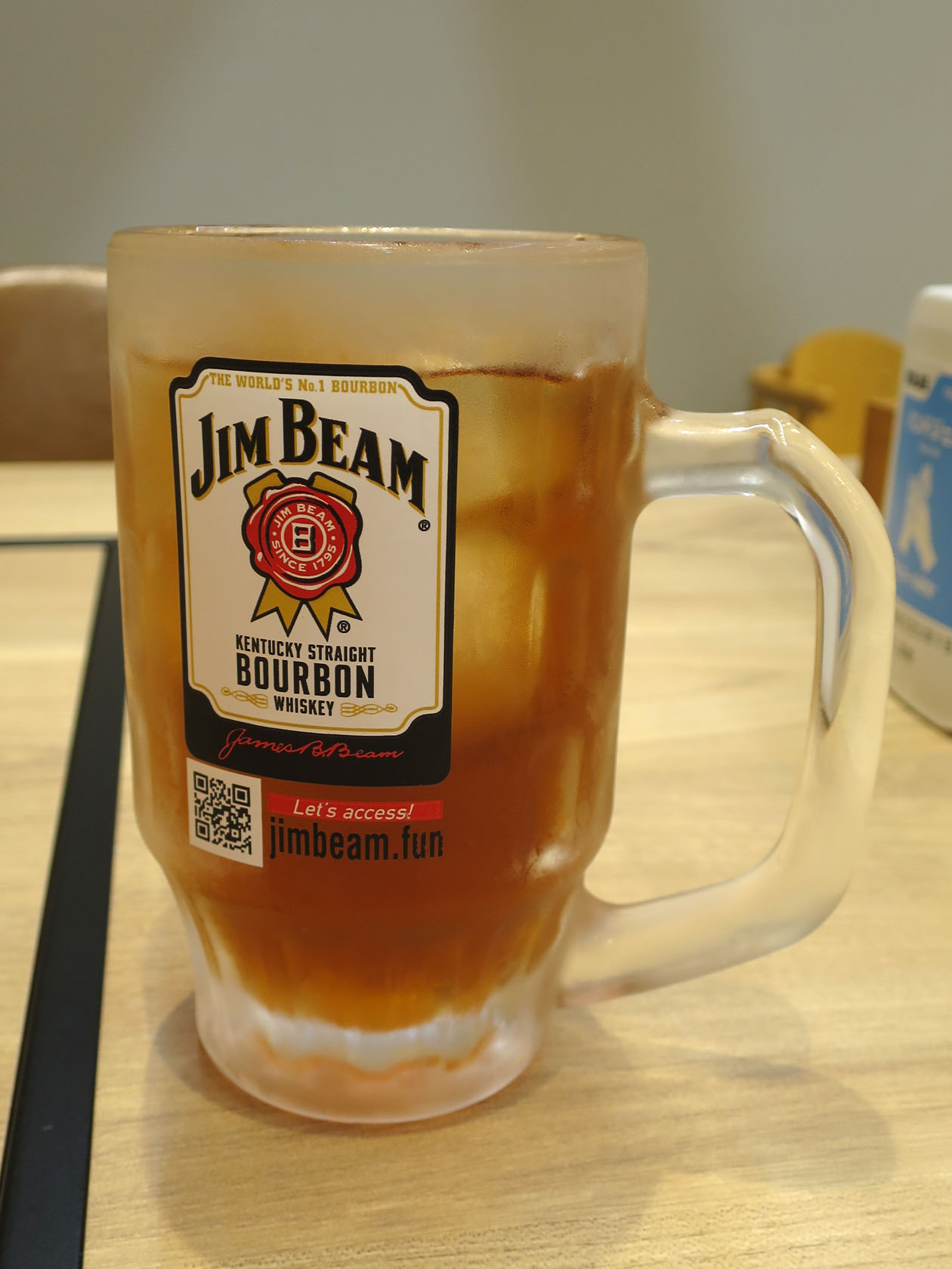 夜はアルコールの提供もありますので(昼でもあるのかもしれないけど)、ビールジョッキみたいなグラスにお茶が入ってます。