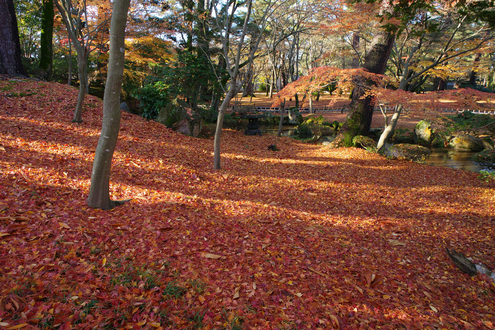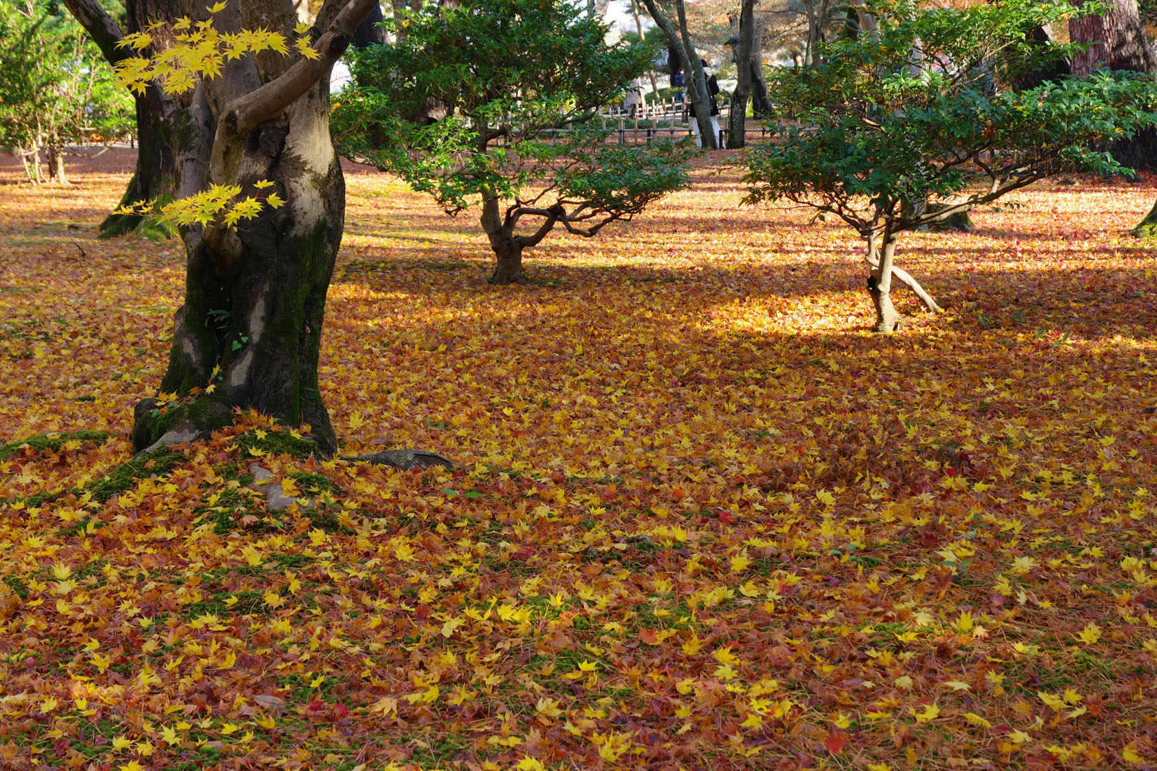 既に散ってしまった葉が多く、落ち葉の絨毯はあちこちに見られました。