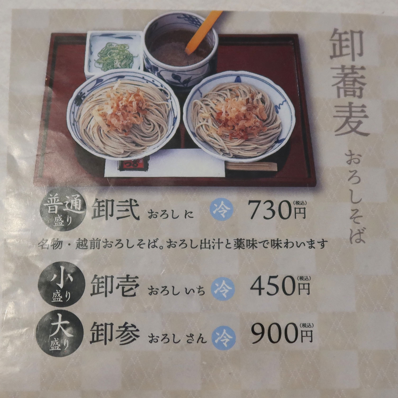 また、蕎麦の大盛りの代わりに、おろし蕎麦の「卸壱」をいただくことに。