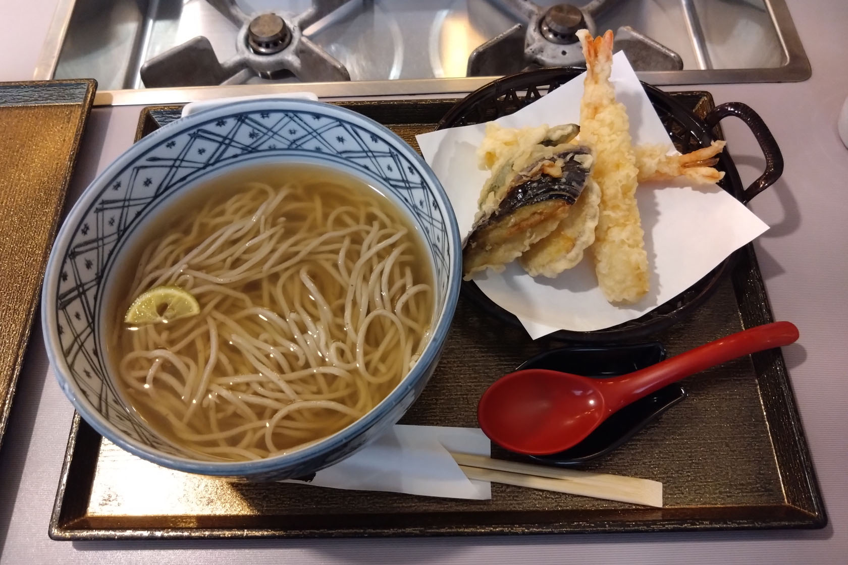 「大海老天婦羅」が一番人気とのことでしたが、普通の天婦羅蕎麦でもえび天が2本入ってます。