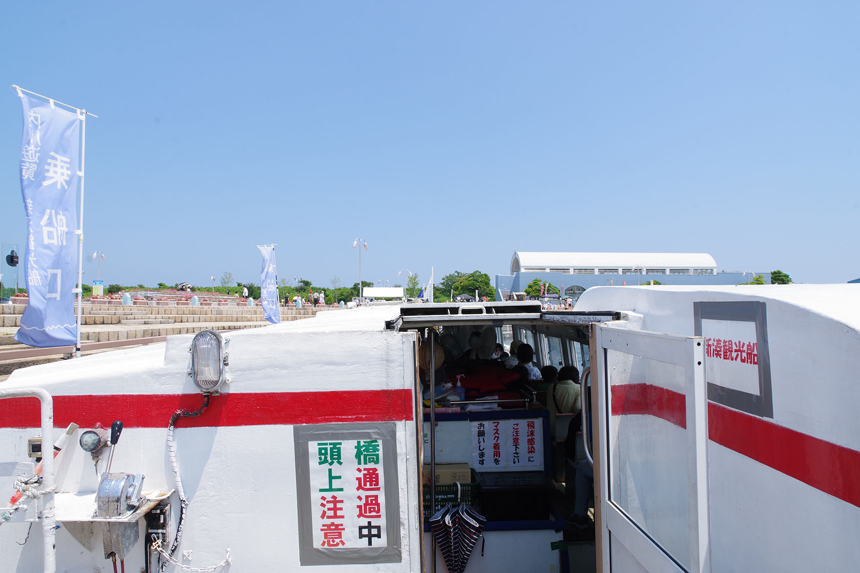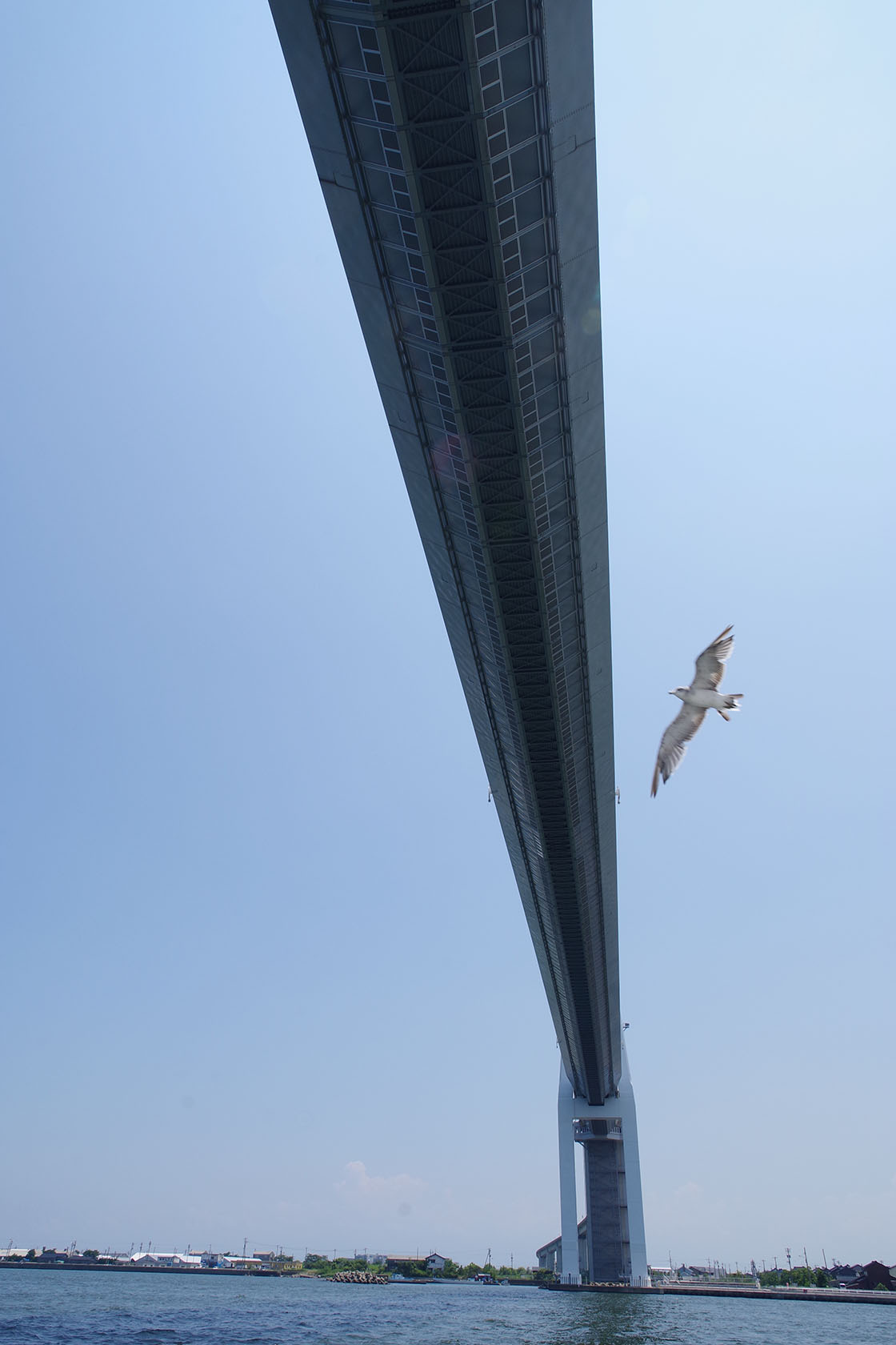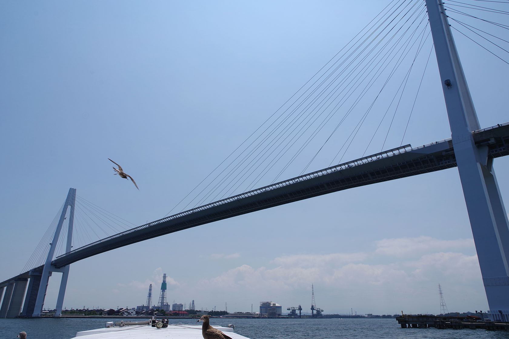 通常の有料コースは内川の橋めぐりなどを行っていますが、今回の無料乗船は新湊大橋の下をくぐって、その先を少し回って戻ってくる25分間のショートコースです。