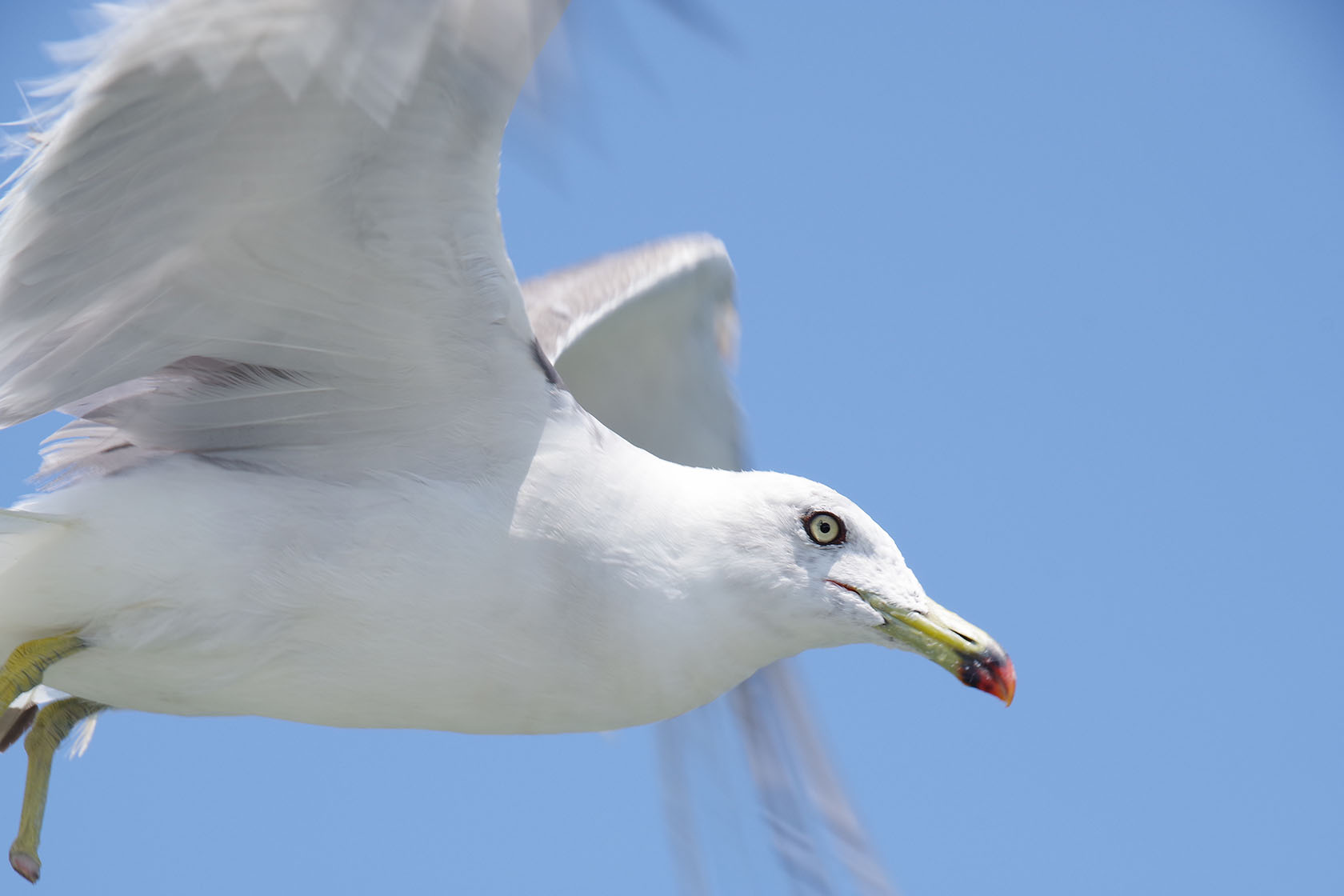 船にはカモメのおやつ(かっぱえびせん)が売られていて餌やりが出来るので、それを目当てに多くのカモメが船に寄ってきます。