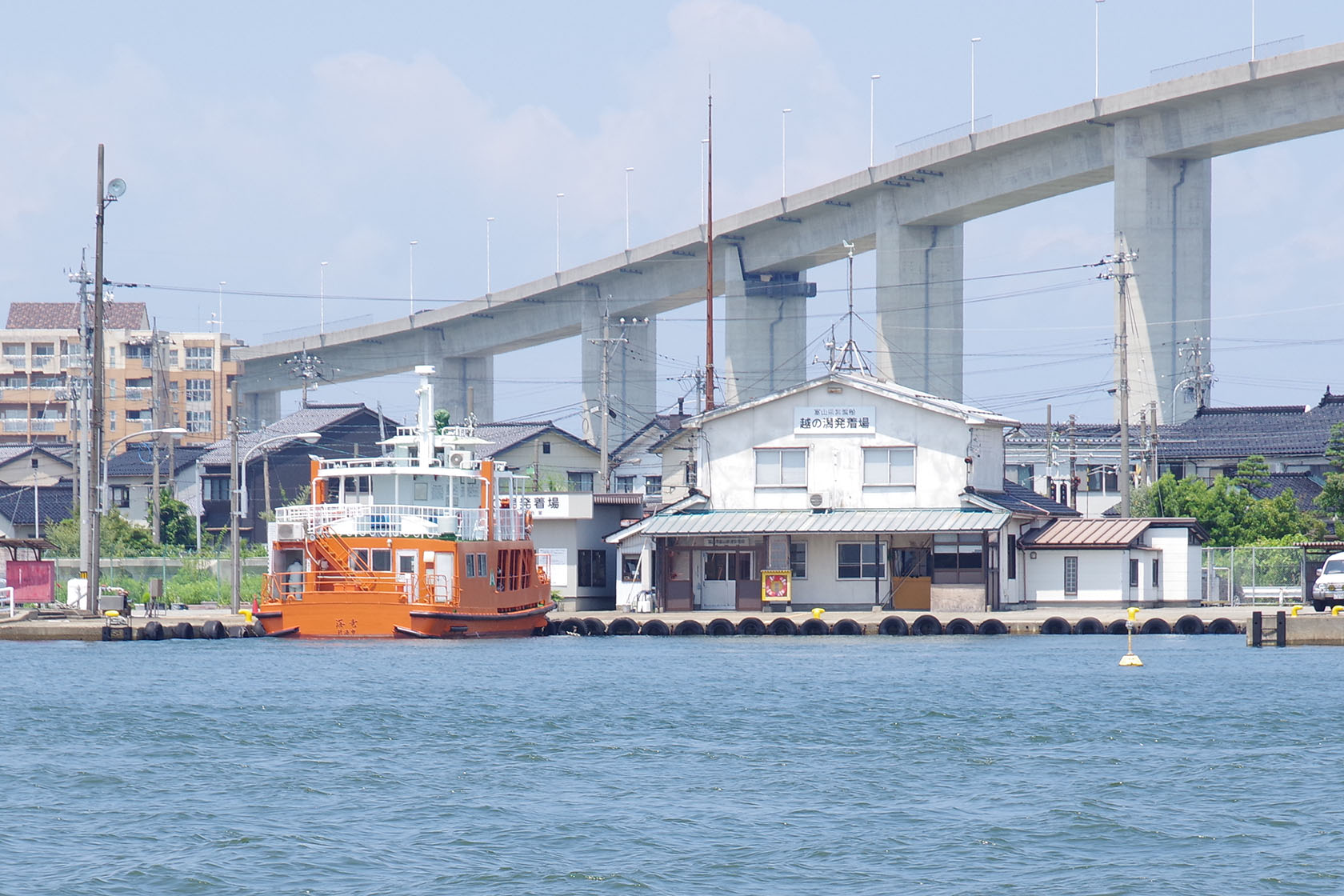 先ほど越の潟を出て行った船が、今度は堀岡を出ていくところでした。