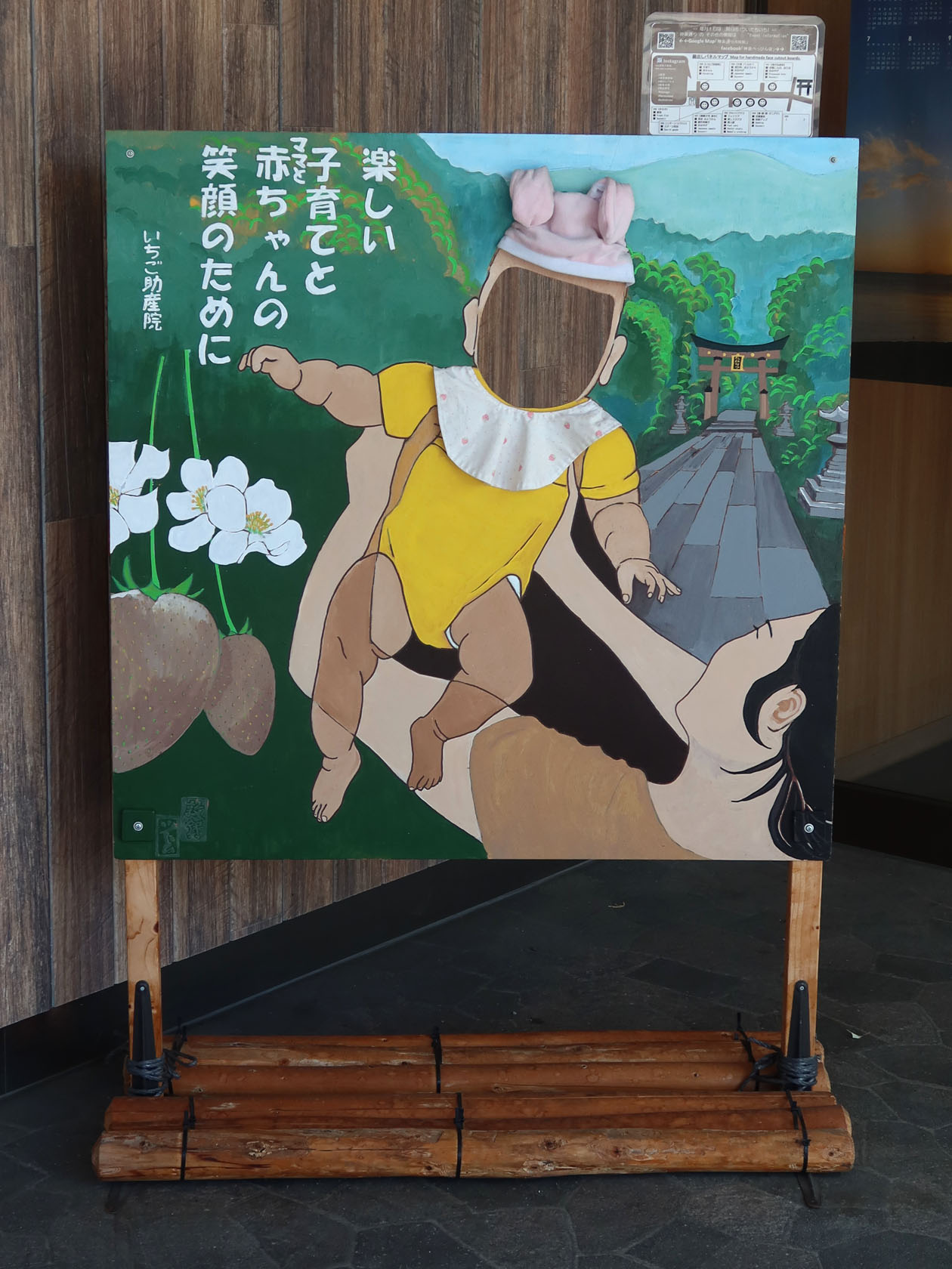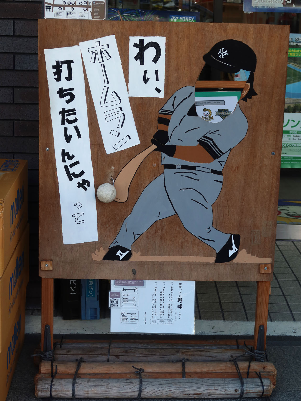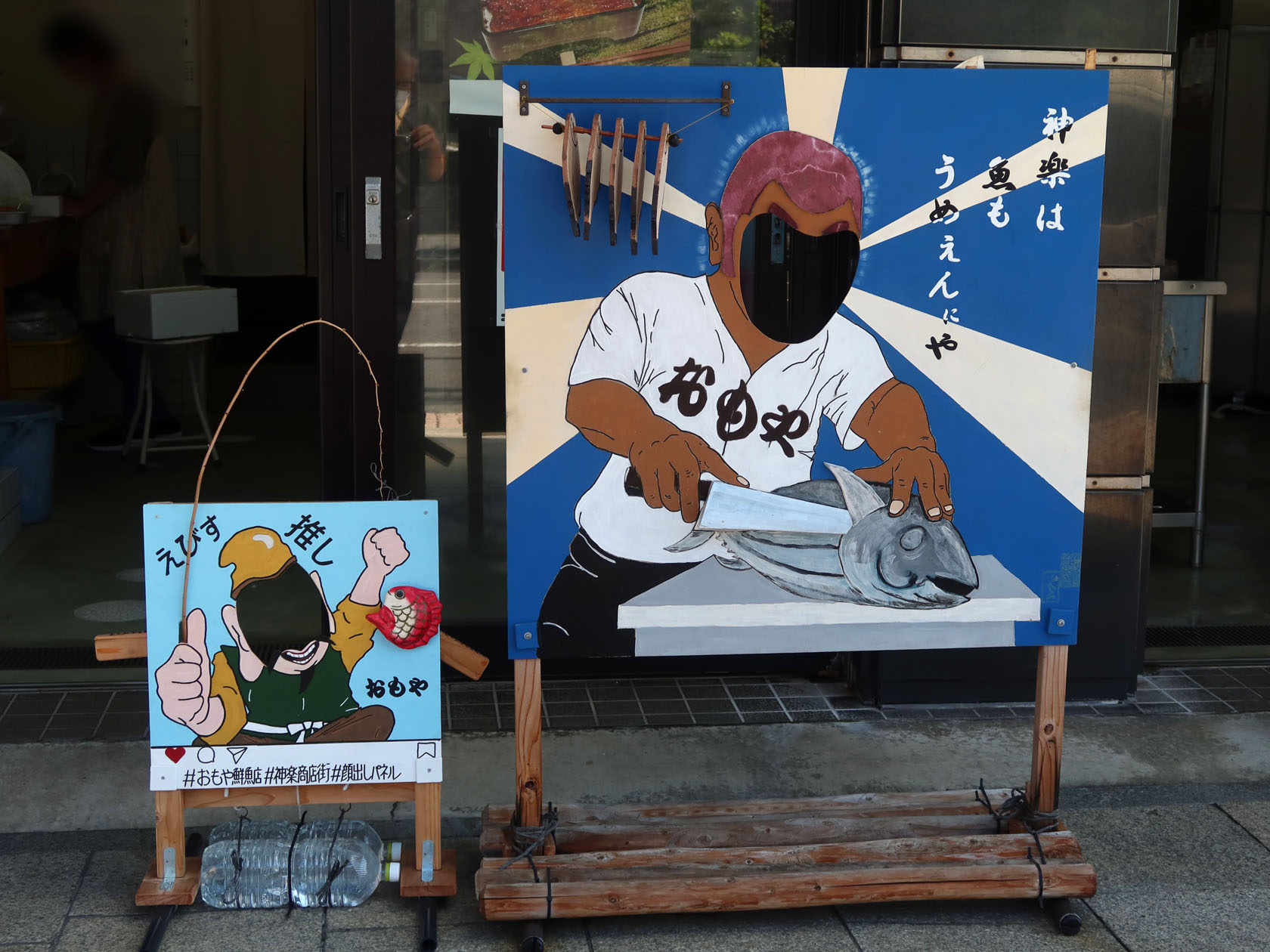 ヨーロッパ軒へ向かう途中の商店街で、いくつかのお店が店の前に顔ハメ看板を出していました。