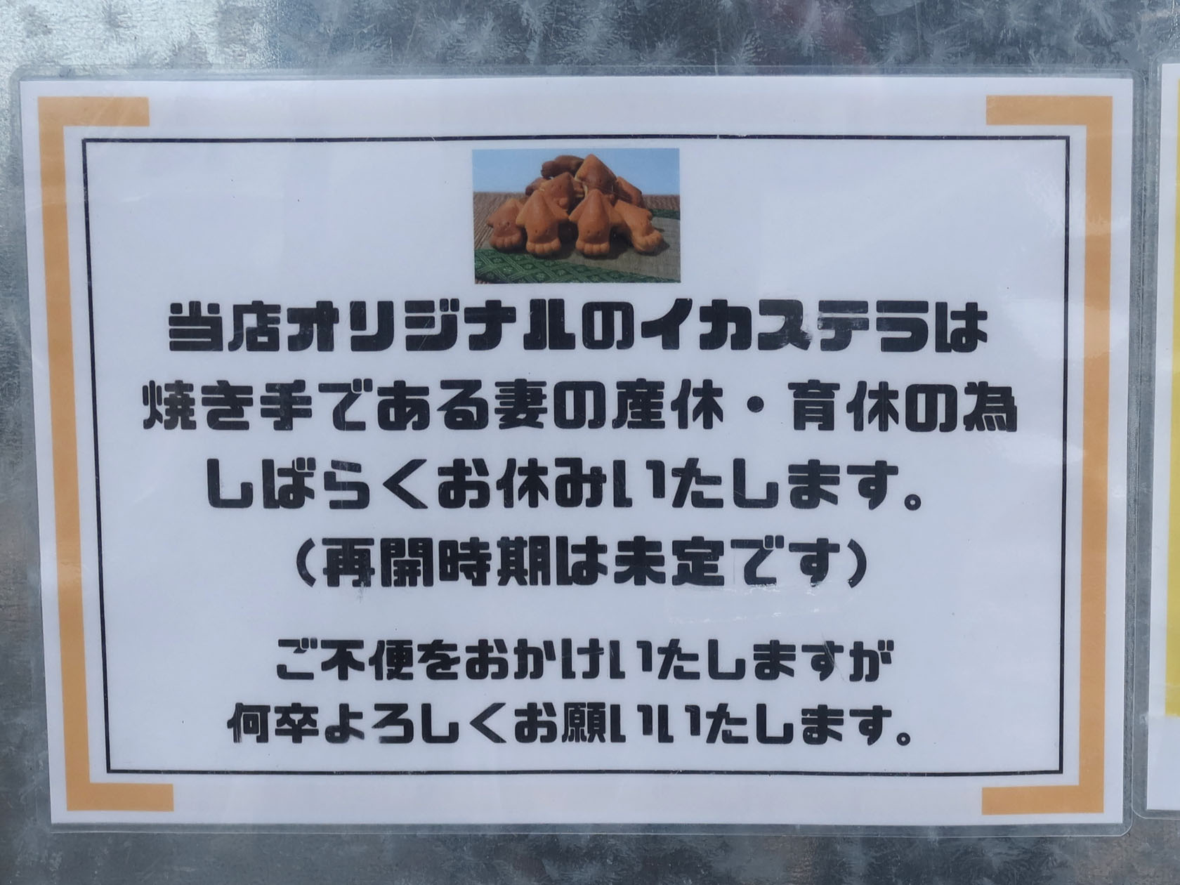 ただ、イカステラは現在販売をお休みしています。