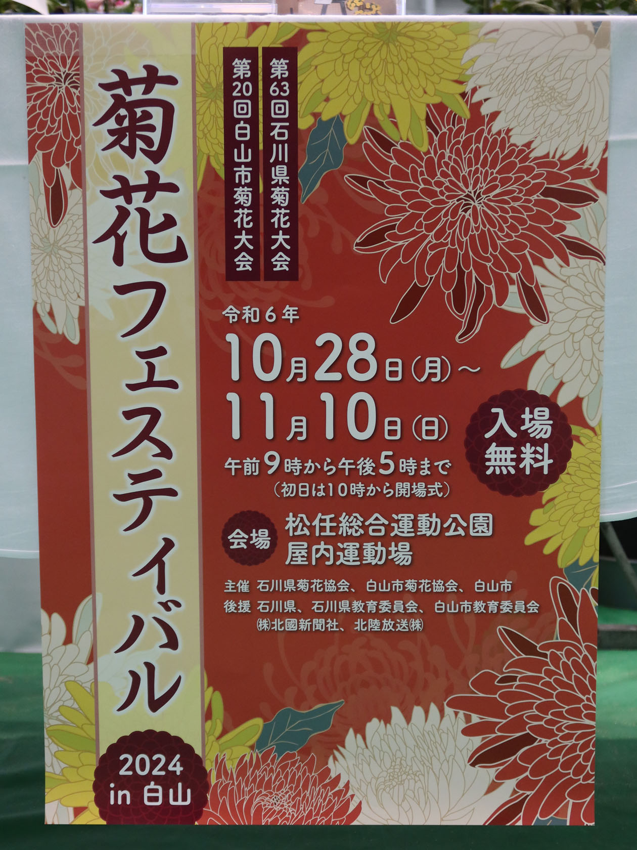 この日は午後から家にいなければいけない用事があったので、元々イベントなどに出かけることは出来なかったのですが、午前中は少し時間があったので、近くで開催されている「菊花フェスティバル2024 in 白山」を見に行ってきました。