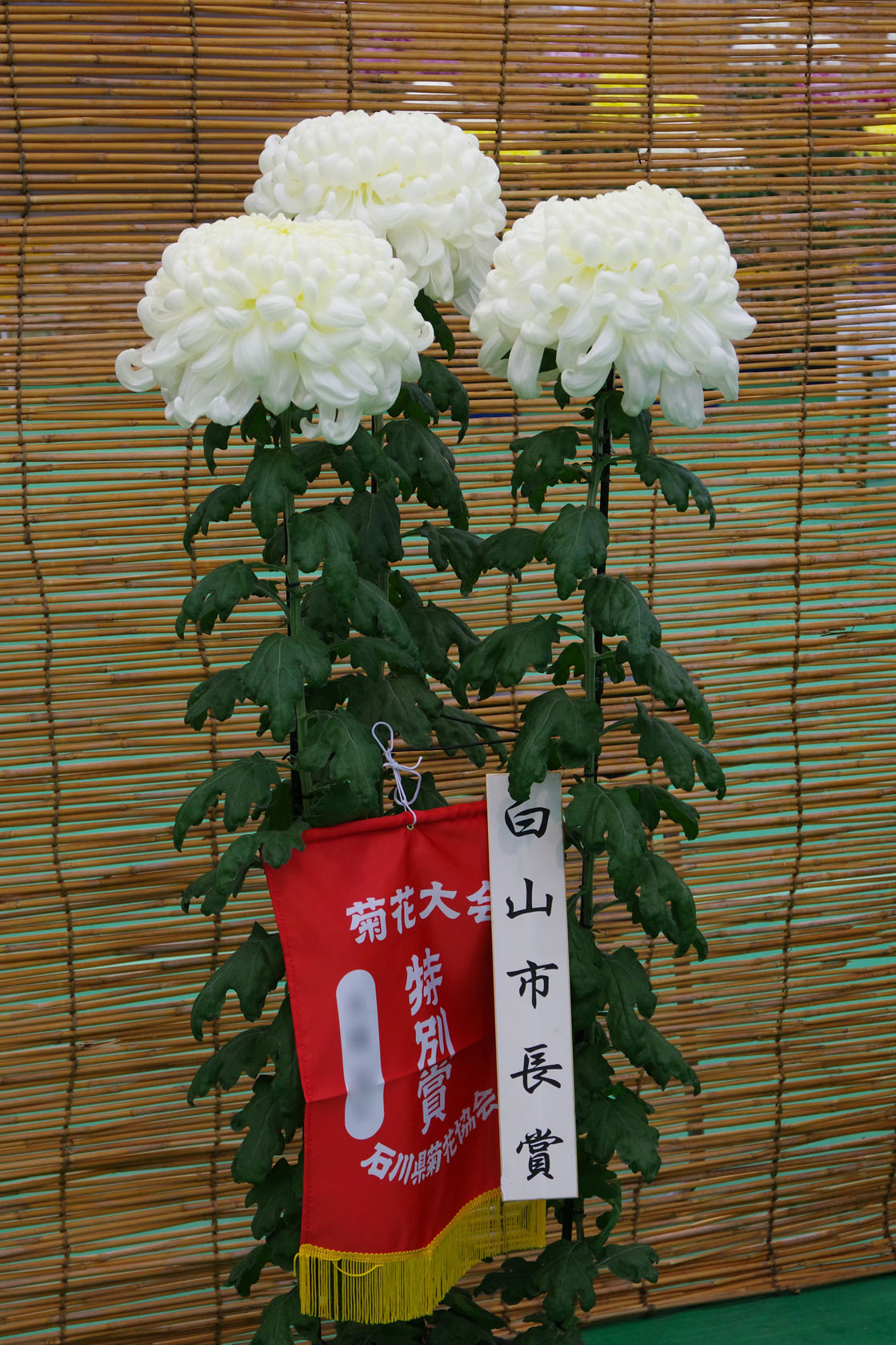 石川県菊花大会と白山市菊花大会の同時開催となっています。石川県菊花協会及と白山市菊花協会の会員など愛好家が育てた菊花が展示されていて、県内最大の菊の展示会なんだそうです。