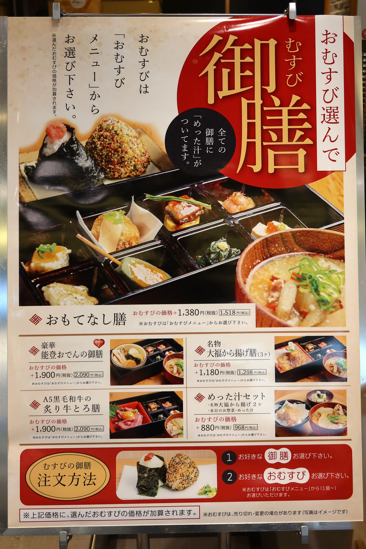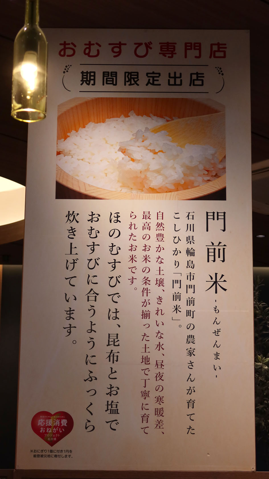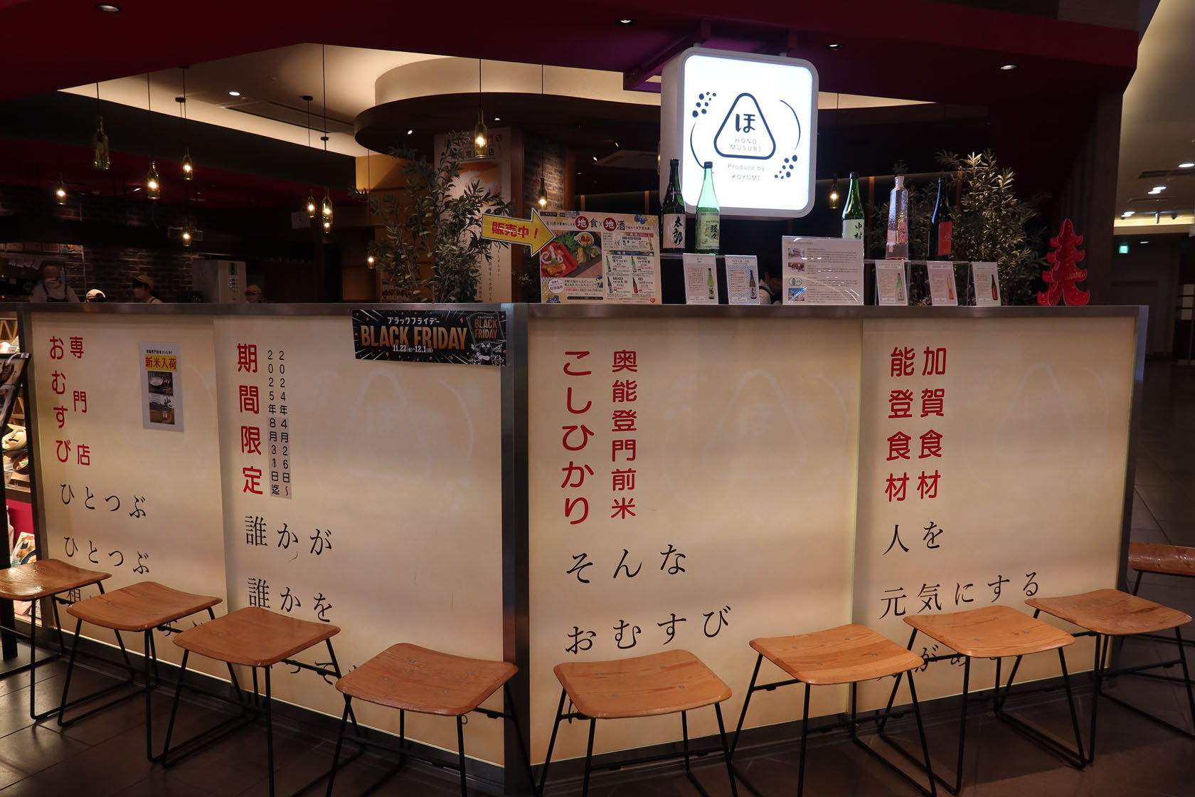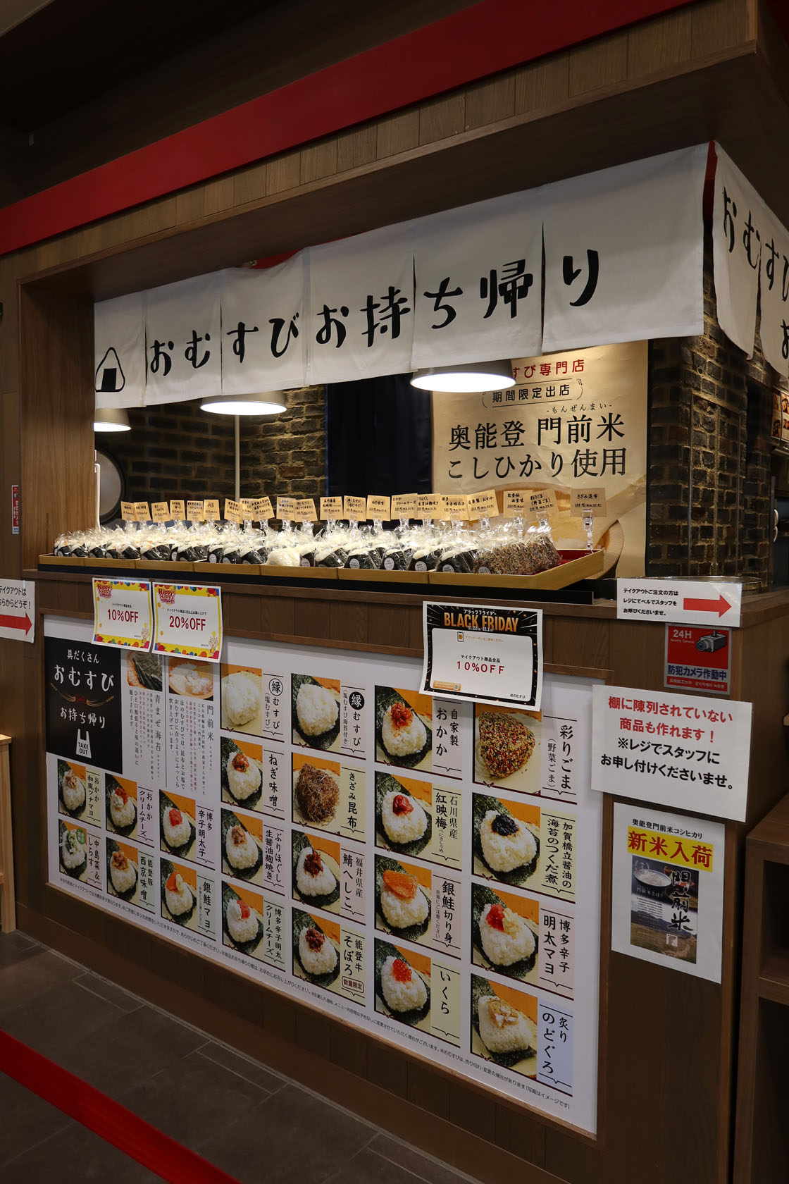 金沢で飲食店を多く展開しているこよみグループのもむすび専門店で、来年7年2月28日までの期間限定出店となっています。