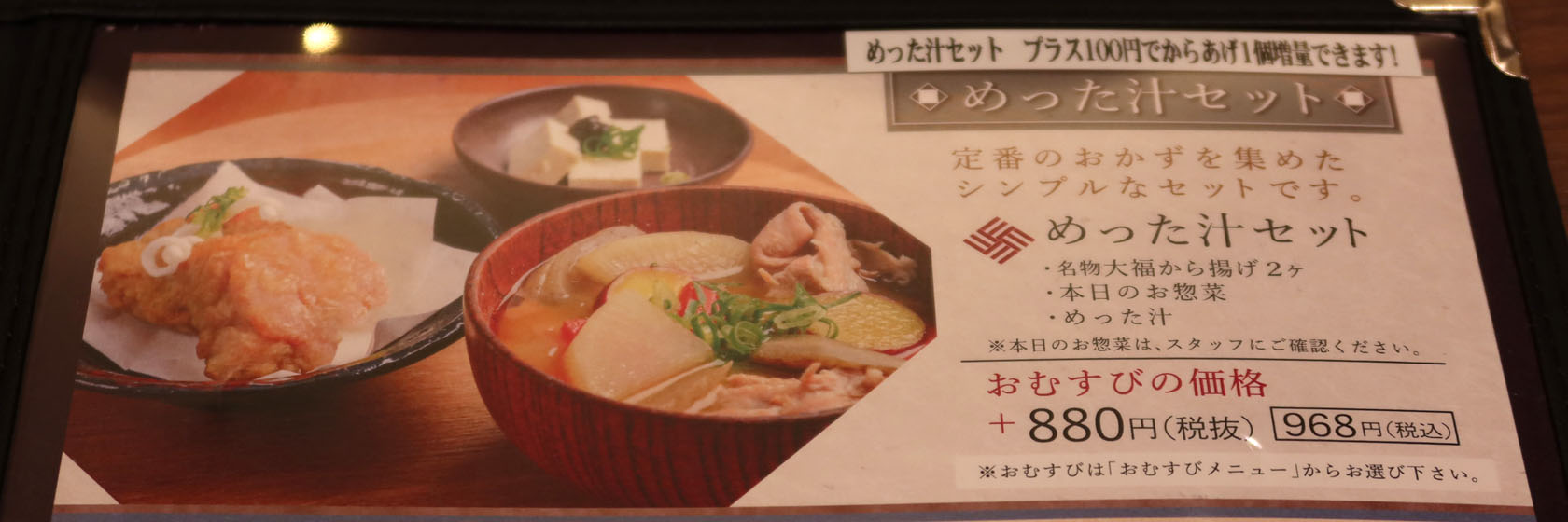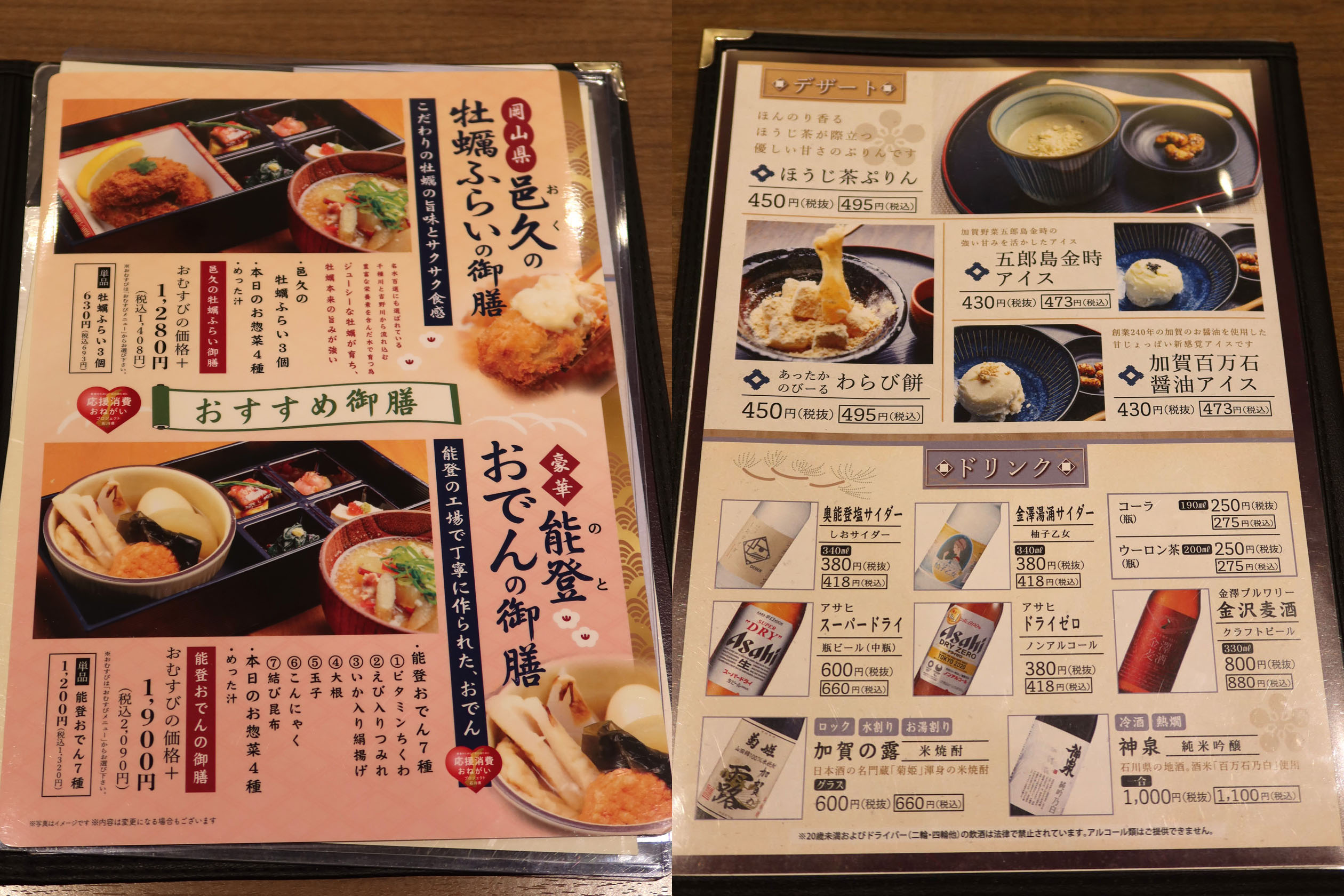 しかしどれもなかなかいいおお値段。こよみグループはリーズナブルなお店が多いのですが、ここはちょっと高めの設定ですね。イオンモール新小松にもほのむすびのお店がありますが、小松のほうはもっとリーズナブルな定食メニューが多いです。金沢フォーラス店は金沢駅前ということもあって観光客向けのメニュー展開になっているように思います。