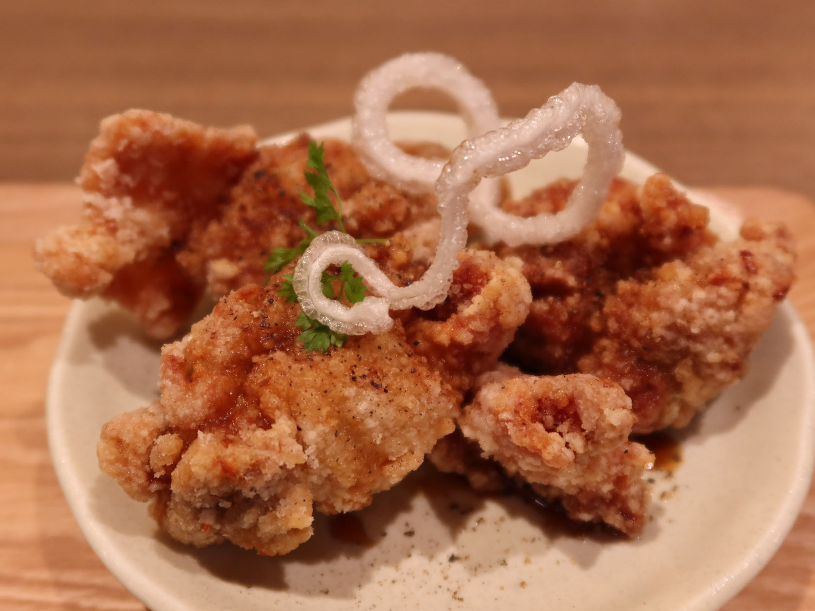 カラッと揚がった唐揚げは醬油ベースの甘いたれがかかっていて美味しかったですが、注文を受けてから揚げているのではないようで、揚げたて熱々ではなかったのはちょっと残念ですね。
