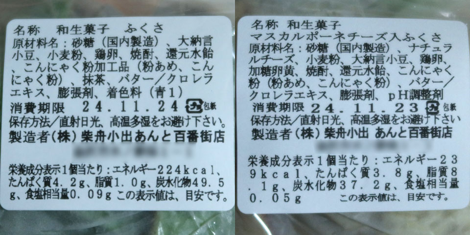 カロリーはチーズ入が239kcalで、普通のふくさが224kcalです。