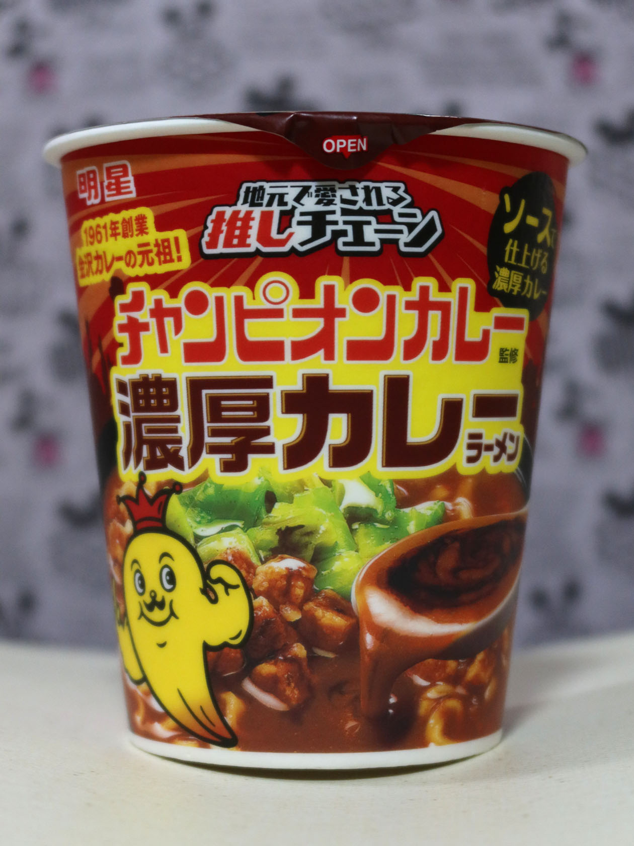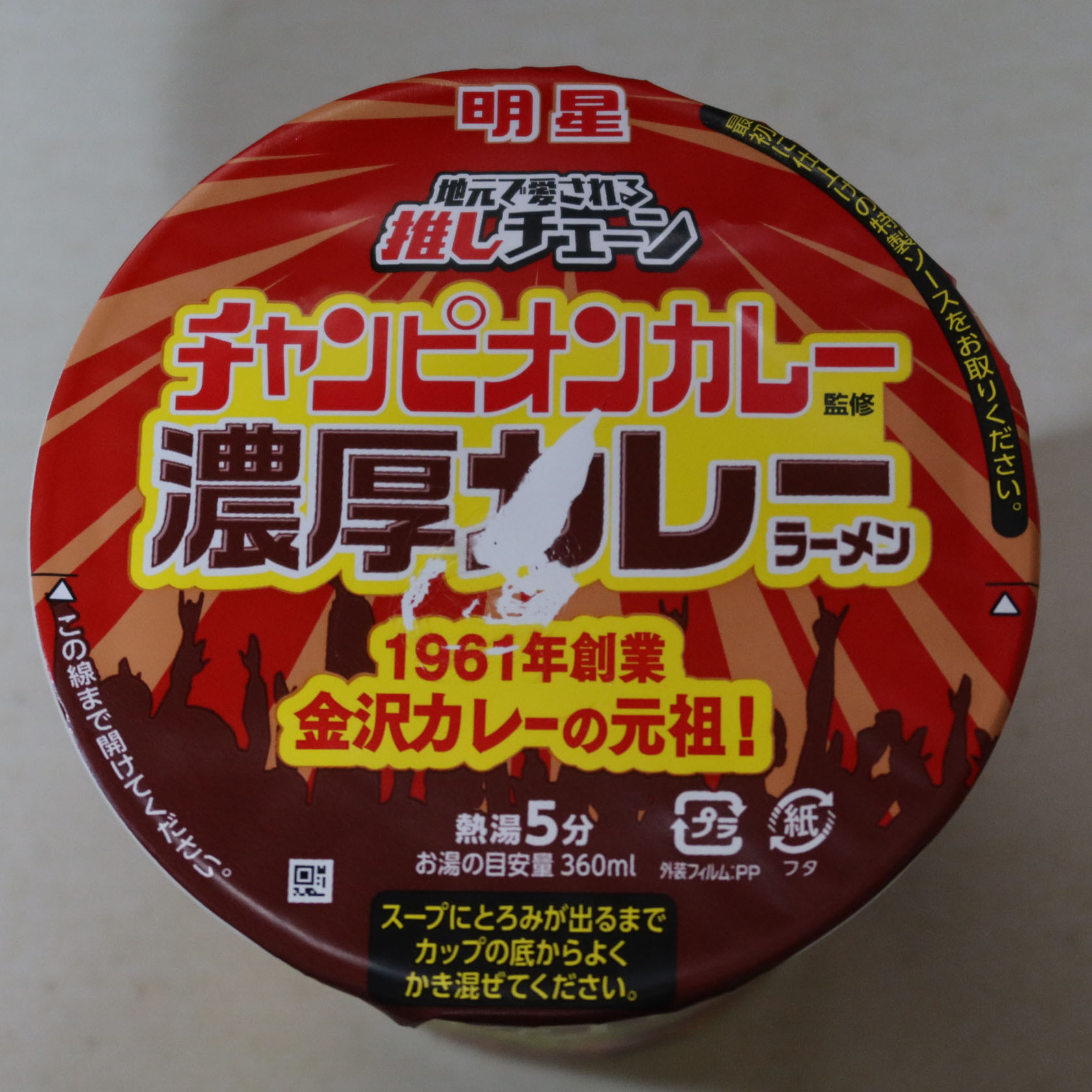 近所のスーパーで買ってきた「明星 チャンピオンカレー監修 濃厚カレーラーメン」です。