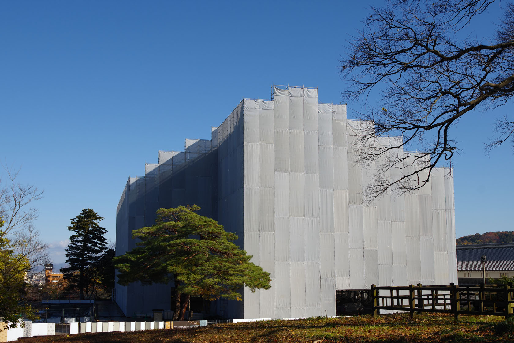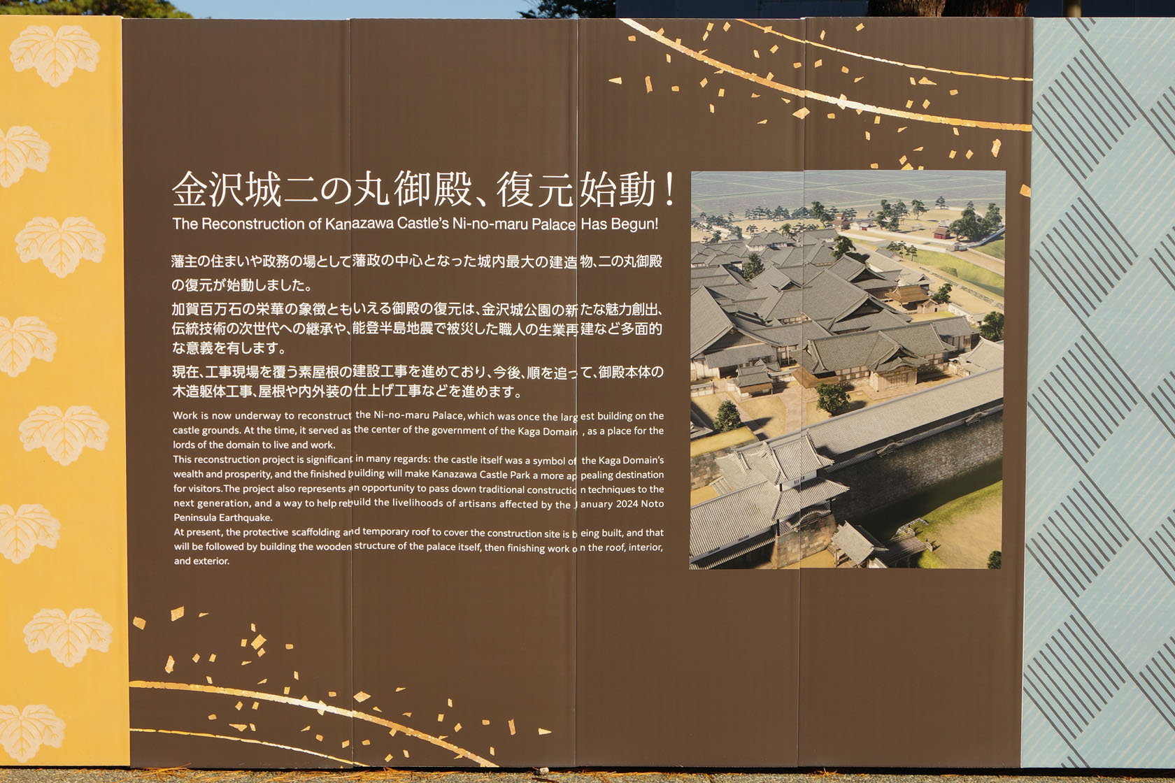 金沢城公園では、二の丸御殿の復元が始まっていました。