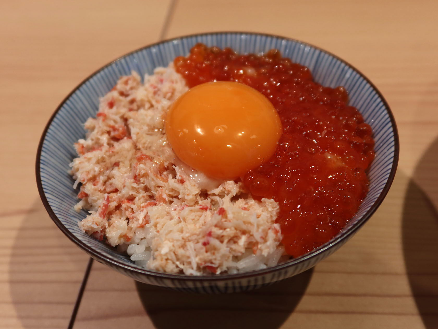 「丼」というものの、サイズ的にはご飯サイズで、ラーメンとセットにちょうどいい量です。新鮮なカニとイクラがたっぷり乗っていて、とても美味しかったです。